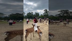 Deer Bites Woman's Bottom at Nara Park