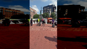 Info from Licensor: "A uniformed officer is driving his motorcycle on the highway while watching Game 3 of the World Series between the Los Angeles Dodgers and the Toronto Blue Jays on his tablet. Credit: Gus O’Neill"