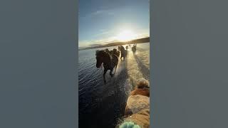 Icelandic Horses Run Across Hóp Lake