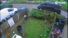Info from Licensor: "Meet Kona, the Great Pyrenees who mastered a unique escape route! While we were away on vacation, Kona figured out how to open our garage door all by himself. We only discovered his clever trick after noticing he was outside every day and setting up a camera to see what was happening. In this security footage, you'll see Kona skillfully place his front paws on a ladder, carefully maneuver across to a hose, and then stretch up to press the garage door button with his nose. Once the door opens, he hops down and heads out on his own little adventure. It’s a brilliant example of just how smart and determined dogs can be! Credit: Daren Crigler, Jalapi Media"