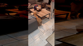Info from Licensor: "Mickey, a five-month-old black Labrador Retriever mix being fostered at Brickhouse Doggie Daycare while awaiting his forever home, is playing with Buddy, a confident one-year-old Yorkshire Terrier, during a supervised daytime group play session."