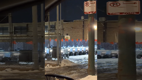 Occurred on January 13, 2026 / Jersey City, New Jersey, USA Info from Licensor: "Two delivery robots meet on the street...and get goo-goo eyes...with heart emojis flashing in their eyes, flirting. Great Valentine's Day feature. Credit: Larry M"
