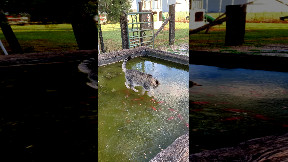 Info from Licensor: "A clumsy moment was captured at Siberian Tiger Park. A tiger jumped into a pond to chase a white duck. The duck swam away easily while the tiger floundered helplessly. Another tiger watched from the bank, almost mocking its companion’s failed hunt. Chinese netizens joked that the king of beasts looked powerless in the water."