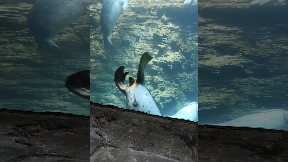 Rare Glimpse of Mother and Pup Seals Swimming in Liaodong Bay