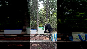 Info from Licensor: "A surprising moment was captured on video when a bear was seen behaving playfully with what appeared to be a coyote. The footage was recorded by deputies from the Altadena Sheriff's Station on June 24, 2025. The bear has since been affectionately nicknamed 'Dena.' Authorities described the bear’s behavior as unusually calm and friendly toward the other animal. The unexpected interaction drew attention for its rarity and peaceful nature. The Altadena Sheriff's Station shared the sighting, noting the unique bond between the wild animals."