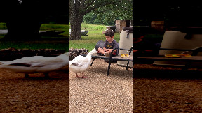 Info from Licensor: "This video was filmed in my backyard in Louisiana and shows two of my pet geese, Loui and Vuitton. When I call their names, they immediately start running toward me with their wings stretched out. Their little run and excited wing flaps make it look like they are flying across the yard to greet me. They are very bonded to our family and love coming when they’re called. The moment was captured casually on my phone and shows their funny personalities and how responsive they are to their names."