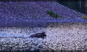 Bull Moose Swims in Mountain Lake