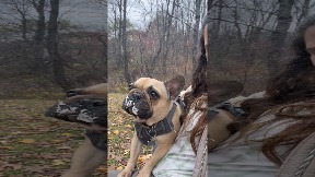 Info from Licensor: "A French Bulldog tries to sneak to the neighbors through a narrow alleyway. He almost got himself stuck, but then find a way to reverse. His back legs are hopping and kicking around and then the Frenchie is back to freedom! Credit: Grizzlybulldog"
