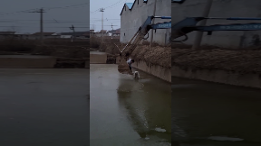 Young Boy Rides Excavator Arm to Save Dog From Muddy Pond