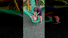 Daughter Falls Backward Off Slide Wall
